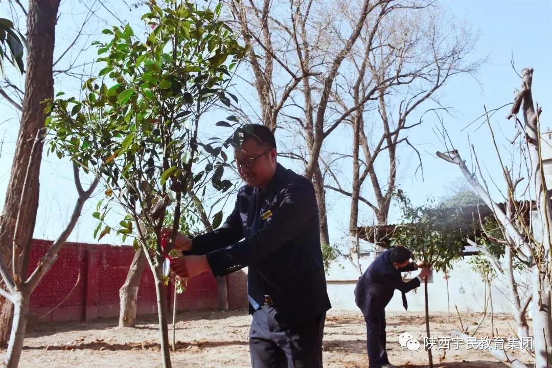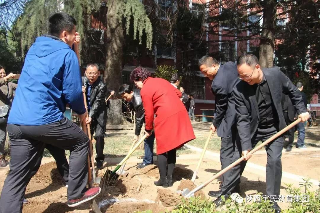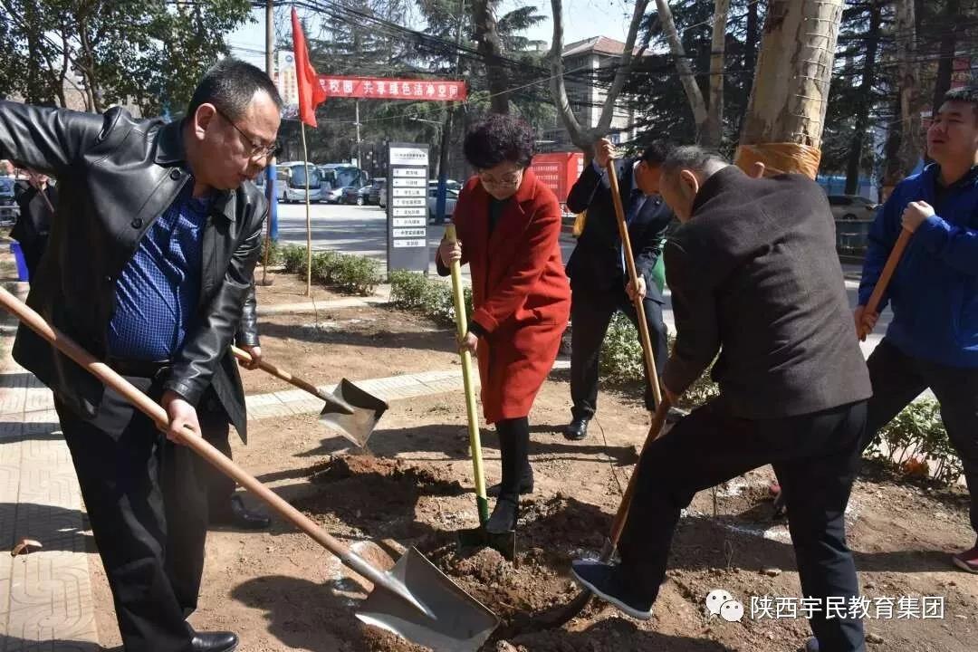 春风拂面,草长莺飞,2018年3月12日,也是我国第40个植树节,西安市人社局党组成员、副局长杨庆、冯莉、副巡视员姚明军、局机关干部职工代表、陕西宇民教育集团董事长郑洪彪、副董事长李东霖,总裁许士明,副总裁蔡磊带领集团旗下各院校全体教职工义务植起了一棵棵保护蓝天,承载希翼的长青之树。