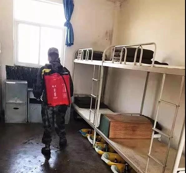 学校三产办及学生处军训科于2019年3月12日消毒通过使用喷雾器喷洒消毒液的方式对教室、宿舍、办公区域进行全面消毒,切实加强疾病预防工作。